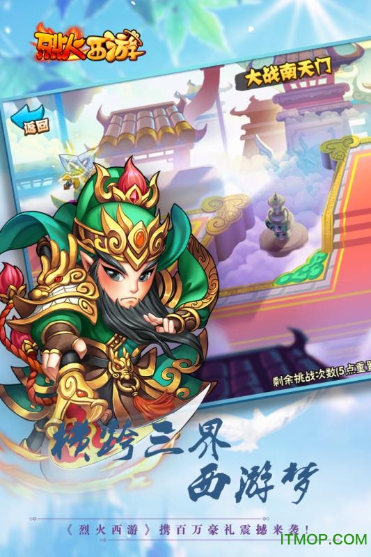 烈火西游手游是一款融合了西游神话与三国元素的回合制仙侠手游,为玩家打造了一个充满奇幻色彩的冒险世界。游戏以经典名著《西游记》为背景,结合三国名将的加入,带来前所未有的战斗体验。在这里,你可以招募孙悟空、紫霞仙子等西游英雄,也能召唤吕布、关羽等三国猛将,组建属于自己的最强阵容。精美的画面、震撼的特效以及丰富的玩法,让你沉浸在这个跨越三界的史诗战场中。无论是单人闯关还是全服竞技,都能感受到策略与操作的完美结合。现在就加入这场仙侠盛宴,开启你的传奇之旅吧!