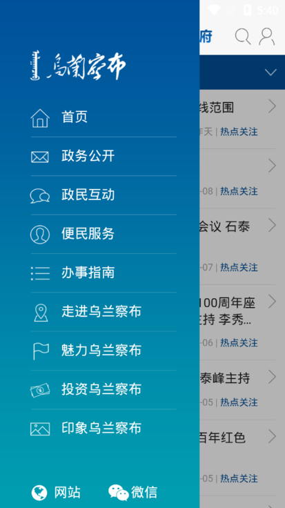 公共服务、居民服务、企业办事、走进乌兰察布、美丽乌兰察布、投资乌兰察布、印象乌兰察布