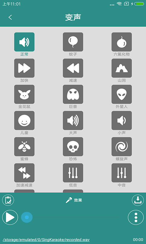 目前软件已收录超过30种不同的声音效果,包括但不限于:花栗鼠、小孩、老人、机器人、火星人、合唱、蜜蜂、外国人、紧张、喝醉、山谷、教学、电话、水下、卷舌头、鸭子、恐怖电影、魔鬼、小机器人、大机器人、外星人、巨人、风扇、大外星人、沙哑等。这些精心设计的声音效果都经过专业调校,确保变声效果自然逼真又充满喜感。