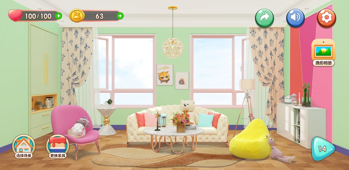 游戏中的每个房间都像一张空白的画布,等待你用色彩来赋予它们生命。你可以选择柔和的色调营造温馨氛围,或是大胆运用鲜艳色彩打造个性空间。随着游戏进程的推进,你将解锁更多高级装饰品和特殊颜料,让你的设计作品更加出彩。