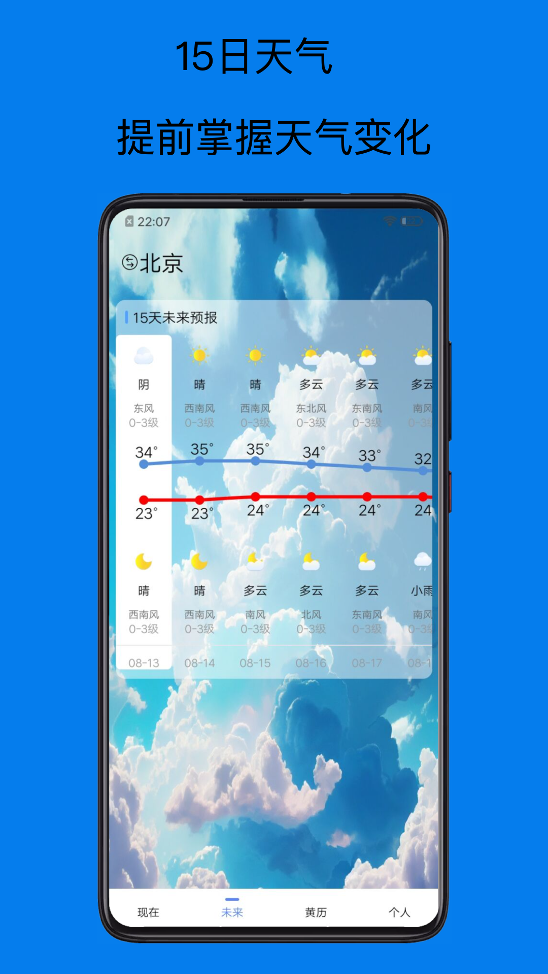 未来15日天气,风向,温度,空气质量预报;支持多日天气趋势图表展示,直观了解天气变化规律;