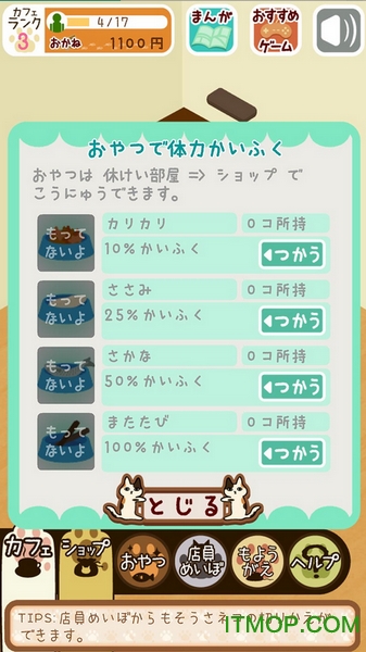 建议在游戏前期注意猫咪的体力值,用光了就必须休息,以免影响游戏的正常进程。合理安排猫咪的工作和休息时间非常重要,可以设置轮班制度让猫咪轮流上岗。同时要注意及时补充猫咪的食物和玩具,保持它们的好心情才能提供更好的服务。初期建议优先培养几只全能型猫咪作为主力员工。
