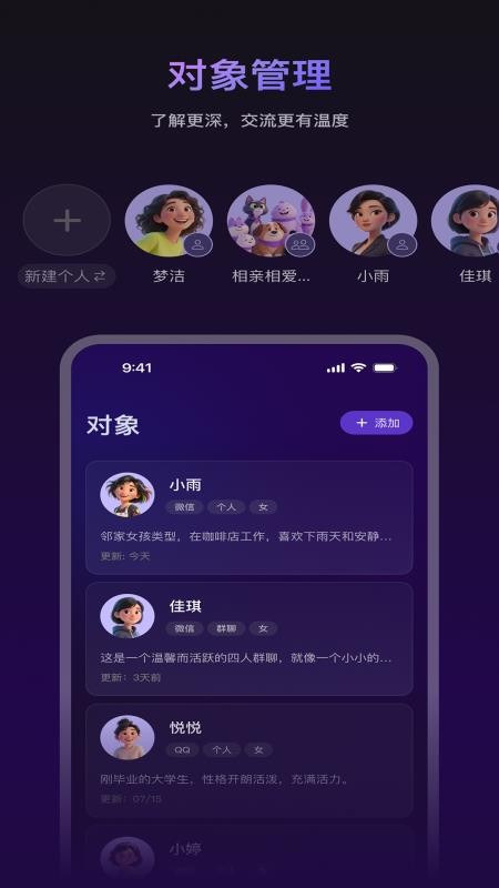提供多种人设风格,满足不同聊天需求和角色扮演。内置12种基础人设模板(如文艺青年、职场精英、幽默达人等),每种人设都有对应的语言风格库。用户还可以通过"人设混搭"功能,创造出独一无二的个人风格,让聊天更具辨识度。
