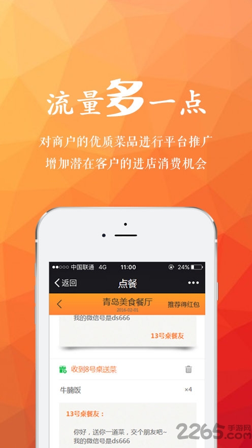 流量多一点,平台会根据菜品销量和评价自动筛选优质商户,在首页进行精准推荐。同时支持优惠券发放和会员营销,帮助商家触达更多潜在客户,线上引流效果提升60%。