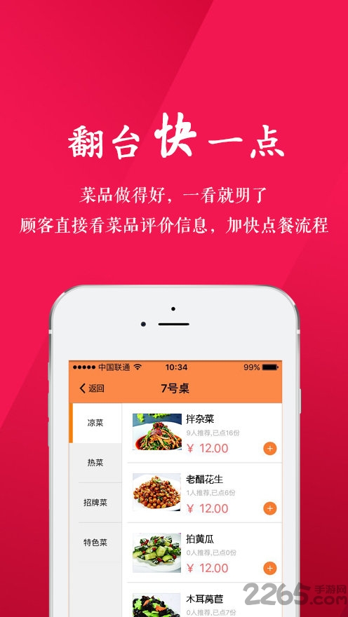 翻台快一点,每道菜品都配有高清图片和真实顾客评价,直观展示菜品特色。热销榜单和厨师推荐功能帮助顾客快速决策,点餐效率提升40%,有效提高餐厅翻台率。