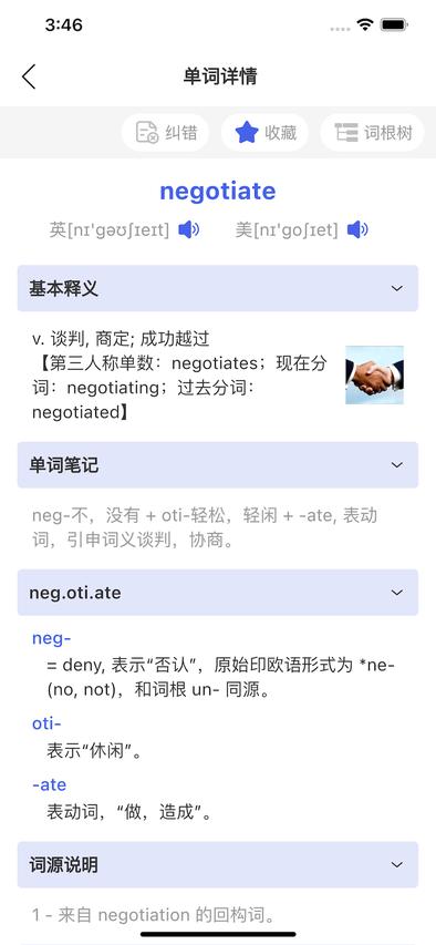 1.按照词根分类快速背单词,贴切权威的例句让你过目不忘。每个词根家族包含10-50个关联词汇,配合影视原声例句和学术文献摘录,在真实语境中掌握用法。