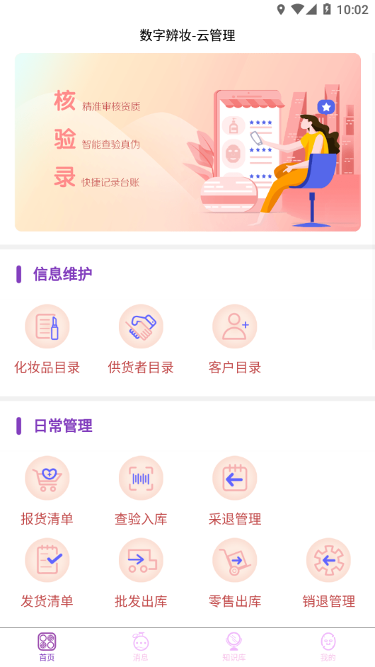 数字辨妆-云管理app是一款专业的化妆品行业管理软件,致力于为企业提供全方位的数字化解决方案。该应用集信息维护、日常管理、质量管理、库存管理、互动管理、消息推送、知识库等多项功能于一体,通过智能化手段帮助用户实现高效运营。无论是产品资质审核、库存盘点还是质量管控,都能通过这款软件轻松完成。其简洁直观的操作界面和强大的云端数据处理能力,让化妆品企业的经营管理变得更加规范化和便捷化,是提升行业竞争力的得力助手。