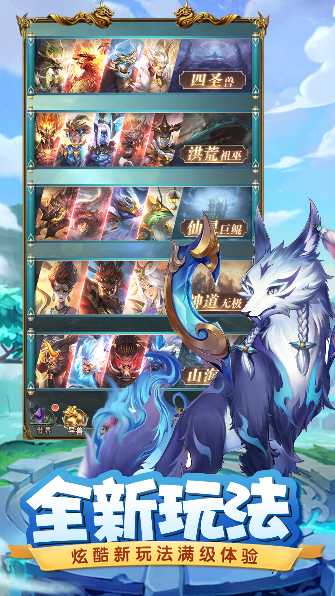 游戏中收录了大量来自山海经的传奇神兽,包括上古嫦娥、后羿、地藏、玄奘等天选角色。更有饕餮、应龙、骨鲲、彩鲲等传说中的神兽助你驰骋沙场!每只神兽都拥有独特的技能和属性,等待玩家去发掘和培养。