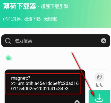 答:将完整的磁力链接复制到薄荷下载器的搜索框中,点击搜索按钮后软件会自动解析资源信息,用户可以选择需要下载的具体文件内容,确认后即可开始高速下载。