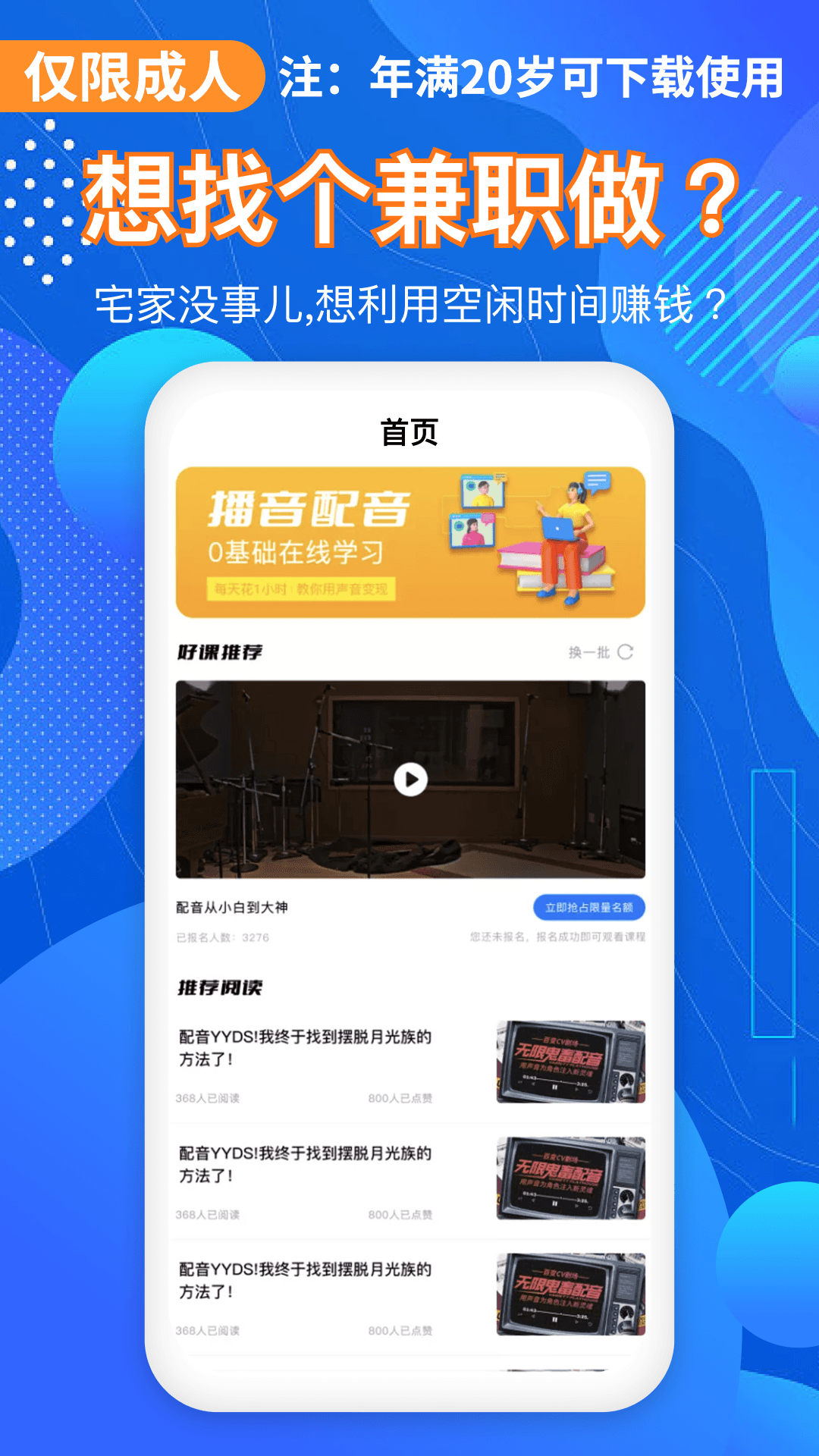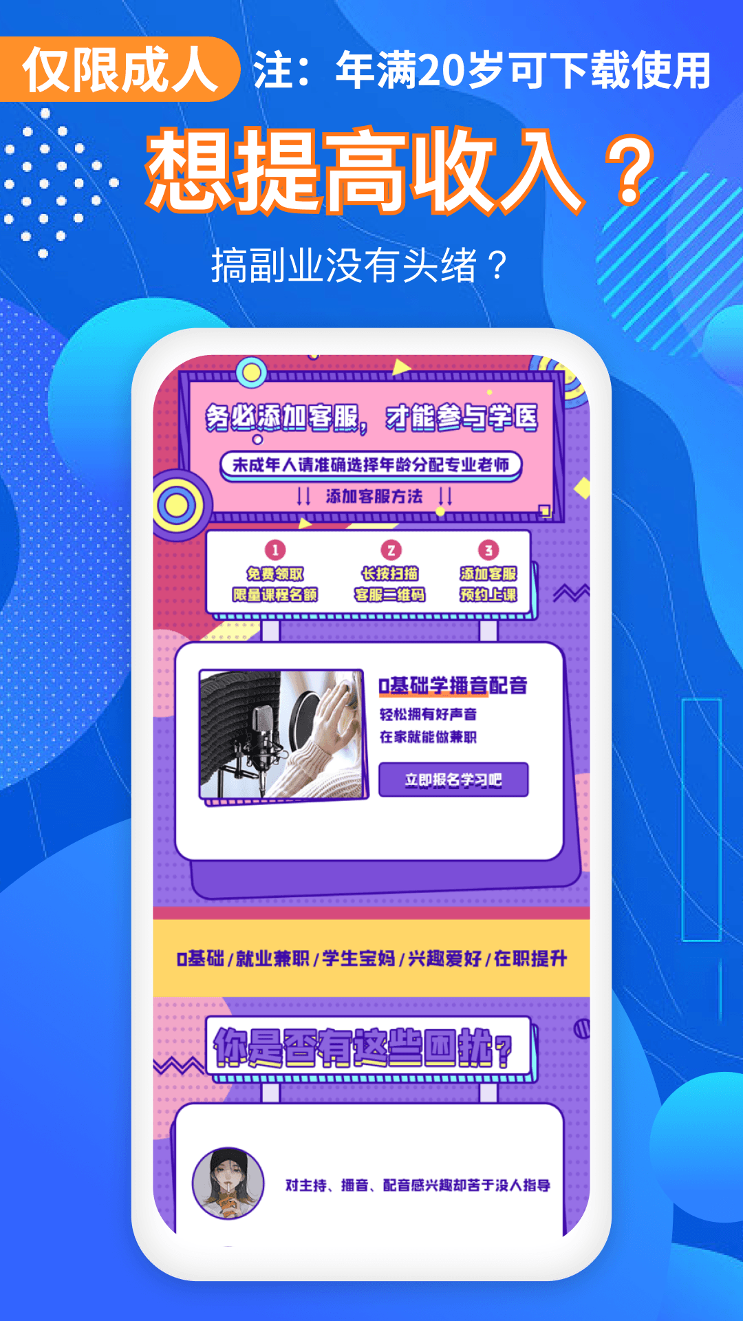 就爱学配音赚钱APP是一款专为配音爱好者打造的综合性平台,集学习、实践与创收于一体。无论你是零基础小白还是经验丰富的配音达人,都能在这里找到适合自己的成长路径。平台提供海量优质课程资源,涵盖配音技巧、情感表达、角色塑造等核心内容,同时对接丰富的商业配音订单,让用户在学习中实践,在实践中变现。通过智能匹配系统,学员可根据自身水平接单,从简单的旁白配音到复杂的影视配音,逐步提升专业能力,实现技能与收入的双重增长。