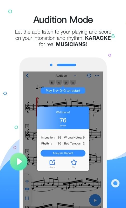 智能启动功能会在练习前自动检测乐器音准,确保练习质量。分段练习模式让用户可以自由选择乐谱中的特定段落进行重点训练,支持设置循环练习区间。软件完美支持各类重复记号,并能智能处理复杂的多声部乐谱。在跟随练习模式下,光标会自动跳转到下一个音符位置,帮助培养良好的视奏能力。当需要暂停时,简单的停止操作就能立即中断练习进程。此外,软件还提供钢琴伴奏轨道,让独奏练习不再单调。
