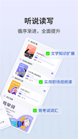 1、一站式学习系统整合了听说读写全方位训练,通过智能分级体系让不同等级知识轻松掌握。从零基础入门到N1高级水平,系统化的课程设计让日语学习变得简单高效。