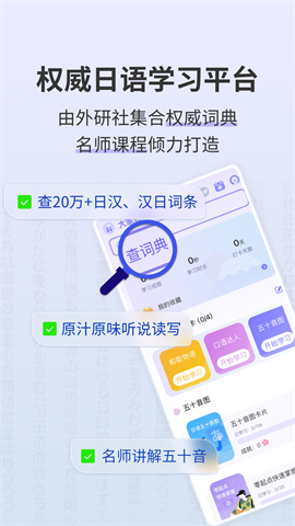 外研社大家的日语是一款专为日语学习者设计的综合性学习平台,由权威教育机构外研社官方推出。该应用整合了系统化的日语学习资源,从基础的五十音图教学到专业的日汉、汉日词典查询功能一应俱全。平台采用科学的学习路径设计,通过丰富的多媒体内容和智能化的学习工具,帮助用户高效掌握日语听说读写各项技能。无论是零基础入门者还是准备考级的进阶学习者,都能在这里找到适合自己水平的学习内容,实现日语能力的全面提升。