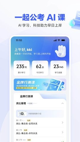 一起公考AI课app是一款专为公务员考试备考群体打造的智能化在线学习平台,它深度融合了人工智能技术与教育领域的创新应用,致力于为用户提供科学、高效且个性化的公考备考解决方案。这款应用不仅拥有系统化的课程体系,还配备了强大的智能学习工具,能够根据每位用户的学习进度和理解能力,动态调整教学内容和练习难度,真正做到因材施教。平台将公务员考试涉及的所有知识点进行了模块化分类,用户可以根据自身基础灵活选择学习路径,循序渐进地掌握考试要点,确保知识体系的完整性和连贯性。