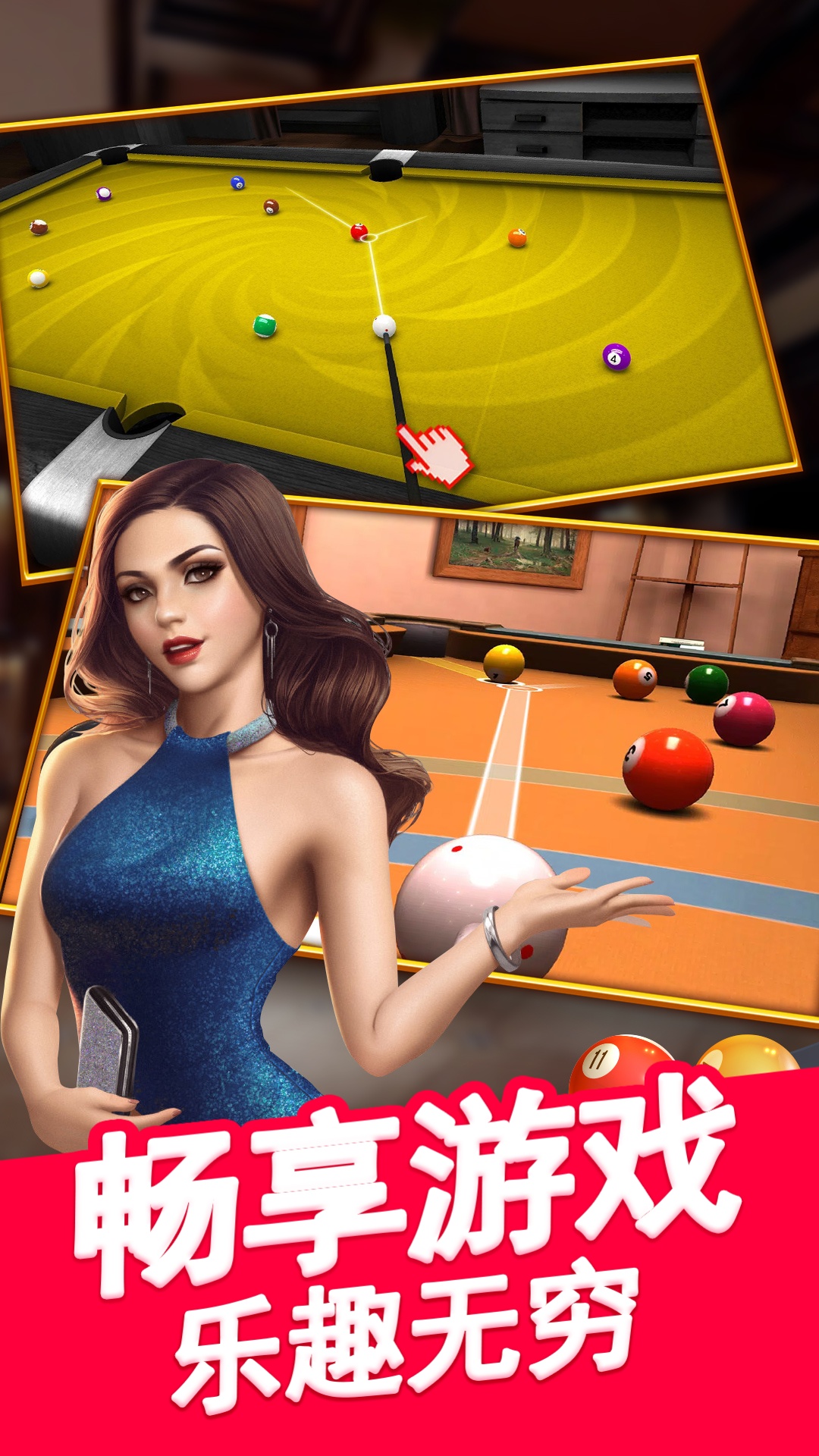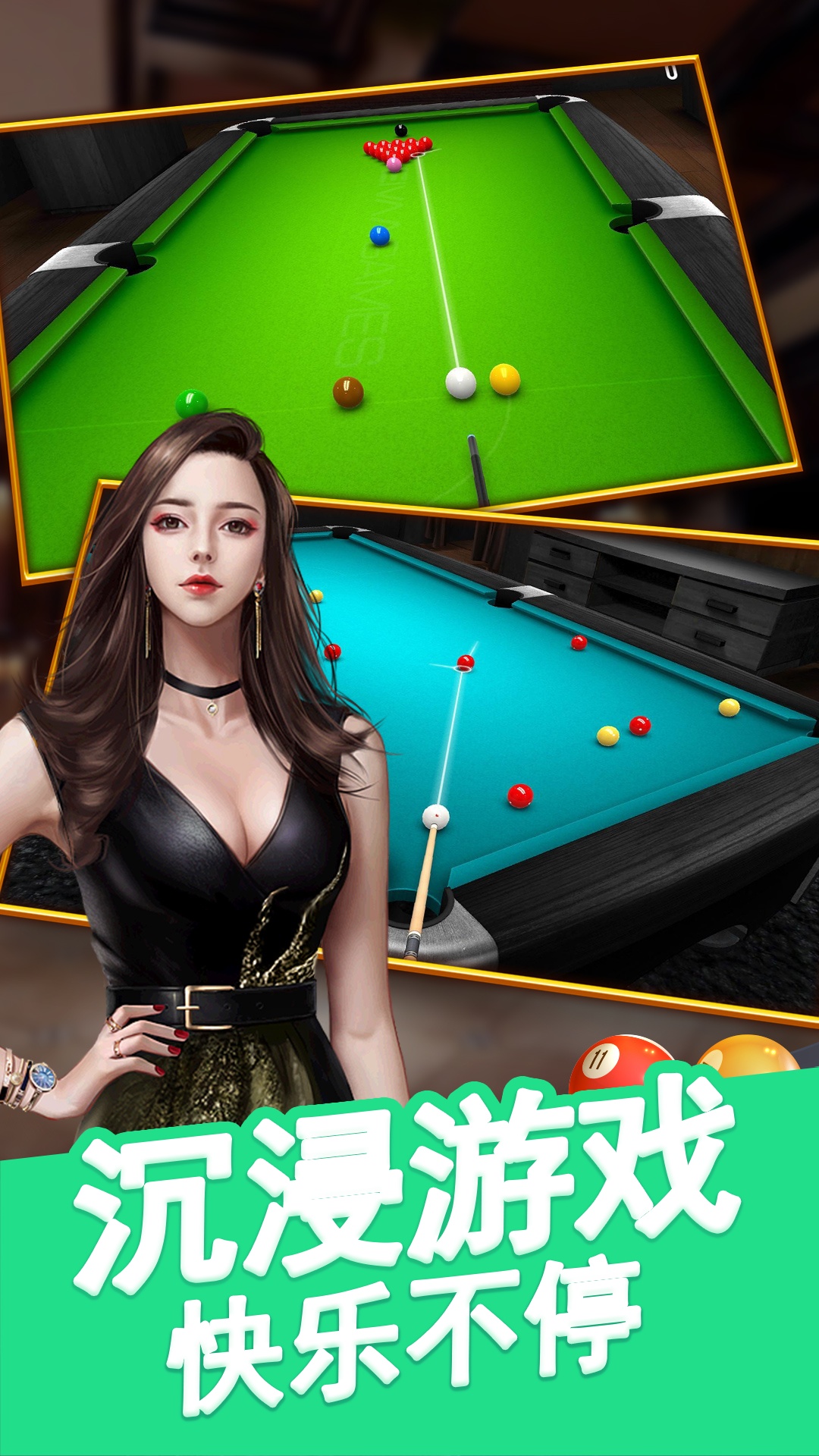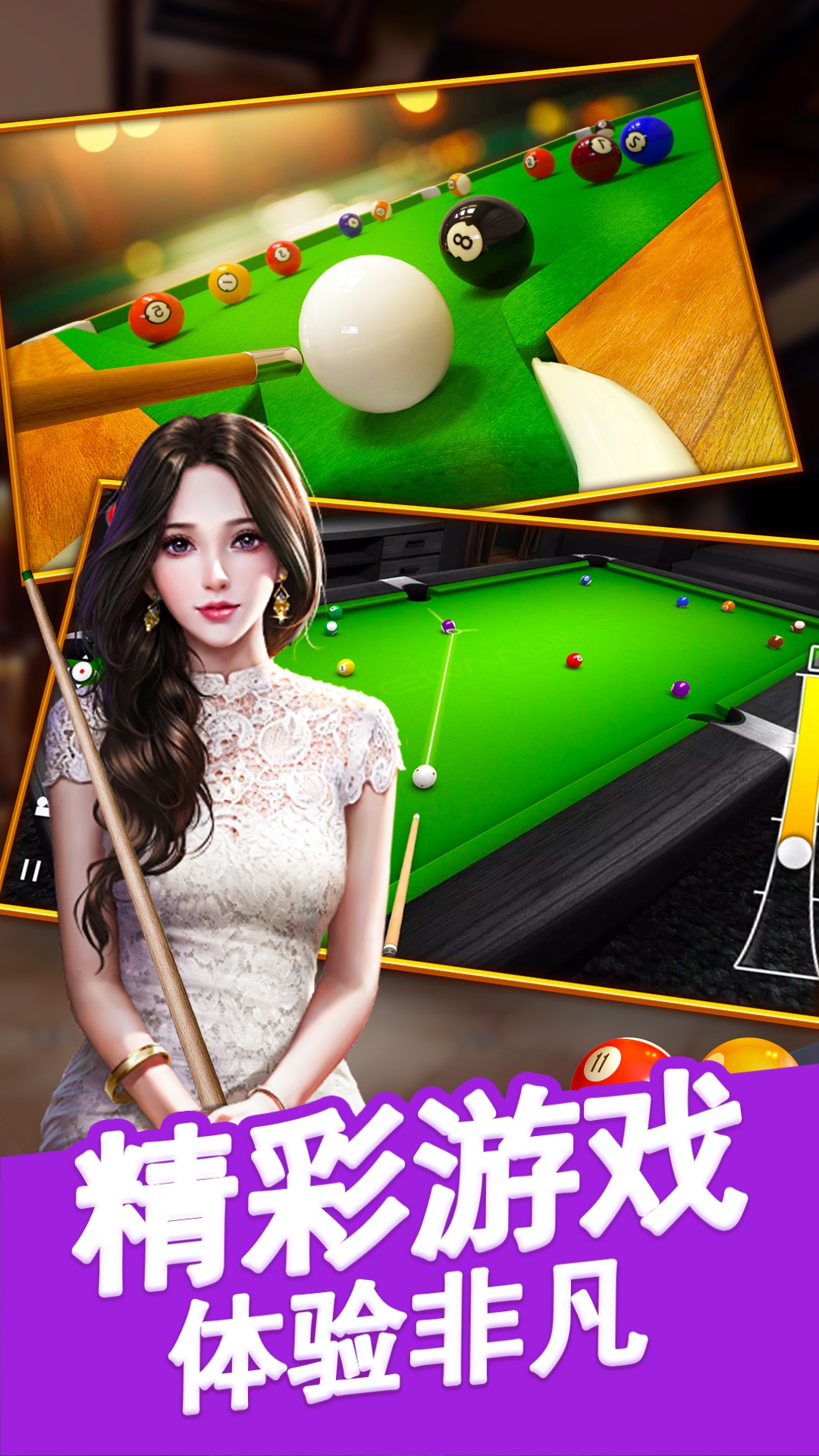 游戏包含多种玩法模式,如8球、9球、斯诺克等。
