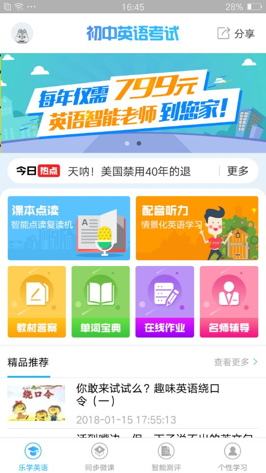 初中英语考试app是一款专为初中学生设计的智能学习工具,通过个性化推荐和科学测评体系,帮助学生高效提升英语能力。软件采用AI技术精准分析学习数据,覆盖词汇、语法、听力、阅读等核心模块,并配备丰富的互动功能。无论是课前预习、课后复习还是考前冲刺,都能为学生提供定制化学习方案。独特的配音练习和智能错题本功能,让英语学习变得生动有趣,告别枯燥的死记硬背。支持离线学习和多设备同步,让学习突破时空限制。