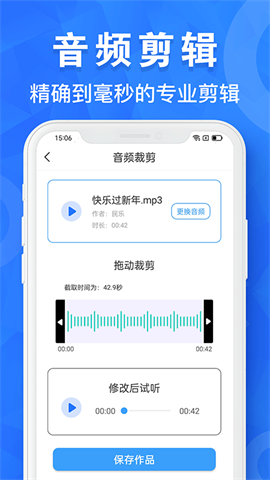 首先可以对各类音频片段进行精确剪辑,为后续的二次创作打下基础。2、进入专业的音频特效库,这里有丰富的音效资源,可以为你的作品增添更多层次感。3、通过智能算法自由处理音频,不仅能显著提升声音清晰度,还能有效降低背景噪音。4、将所有音频素材进行专业级混合,完成复杂的混音操作。5、支持精准到毫秒的专业剪辑功能,让你轻松完成各种复杂的音频裁剪需求。