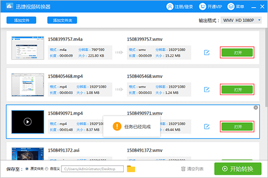 导入文件转换完成:转换完成后可立即预览效果,支持一键打开输出文件夹,方便文件管理。