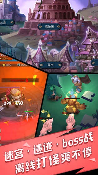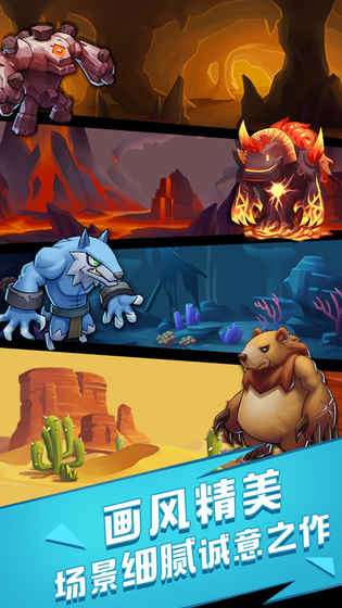 创新的地上地下双线冒险系统:地上是传统放置游戏过关的PVE玩法,地下则是充满挑战的迷宫探险+资源掠夺的PVP玩法,两种玩法相互补充,带来截然不同的游戏体验;