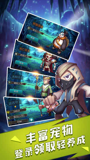 游戏内容丰富多样:三大职业各具特色,上百种主角技能自由搭配,数十种主角造型随心更换,五大章节数百个精心设计的关卡,六十多只形态各异的宠物等待收集培养。