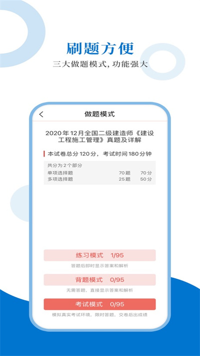 ·三大做题模式,适应不同需要:包含顺序练习、章节练习和模拟考试,满足从基础到冲刺的全阶段需求