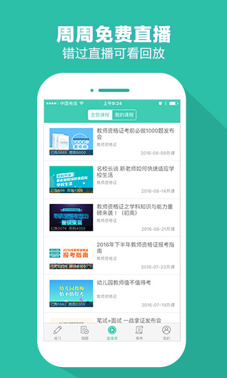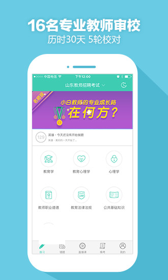 2.每周定期举办名师免费直播课程,涵盖教师资格证和教师招聘考试重点难点,支持实时互动答疑,让用户能充分利用通勤、午休等碎片时间系统学习,大幅提升备考效率。