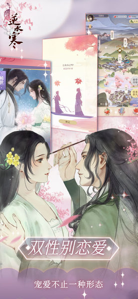 游戏完美继承了端游《逆水寒》的经典IP,玩家可以攻略端游中的人气NPC角色。无情、叶问舟、叶雪青等经典角色都将以全新形象登场,与玩家展开一段跨越时空的浪漫邂逅。游戏独创的"风华选"系统让玩家可以为心仪角色投票助威,还有红尘问答、科举考试等特色玩法等待探索。特别值得一提的是,游戏打破了传统乙女游戏的性别限制,创新性地设计了双性别恋爱系统,男女玩家都能在游戏中找到专属的缘分。玩家可以自由选择攻略对象,体验不同性别视角下的恋爱故事。