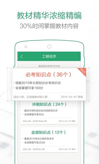 2、教材精编:根据2015最新教材,内容浓缩至30%,最少时间掌握所有重点!专业教研团队对教材内容进行深度提炼,去除冗余信息,保留核心知识点,让考生在有限时间内高效掌握考试要点。这种科学的精简方式可节省70%的学习时间,大幅提升备考效率。