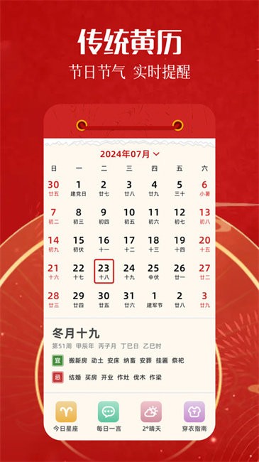 黄历功能:提供每日宜忌事项,传承民俗智慧。