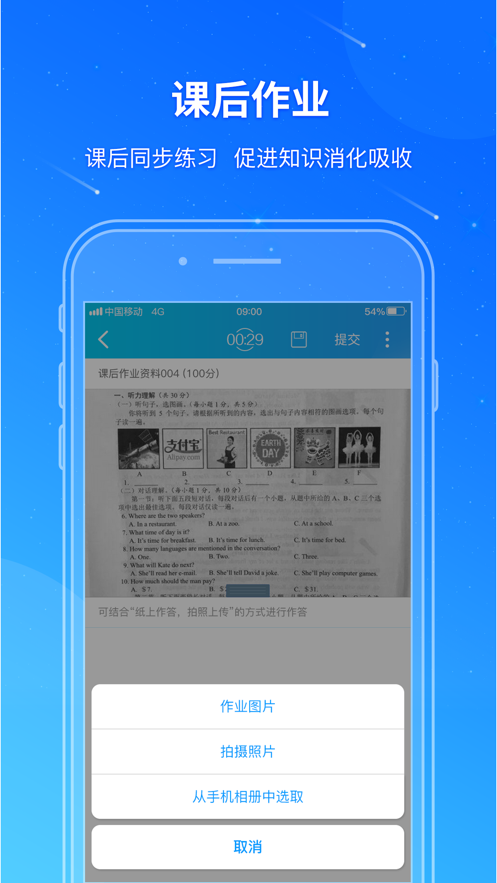 在线测评:支持章节测、月考模考及智能组卷功能。