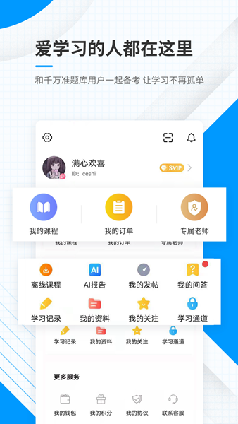 4.个人中心新增学习数据看板,直观展示学习进度和成绩变化趋势。