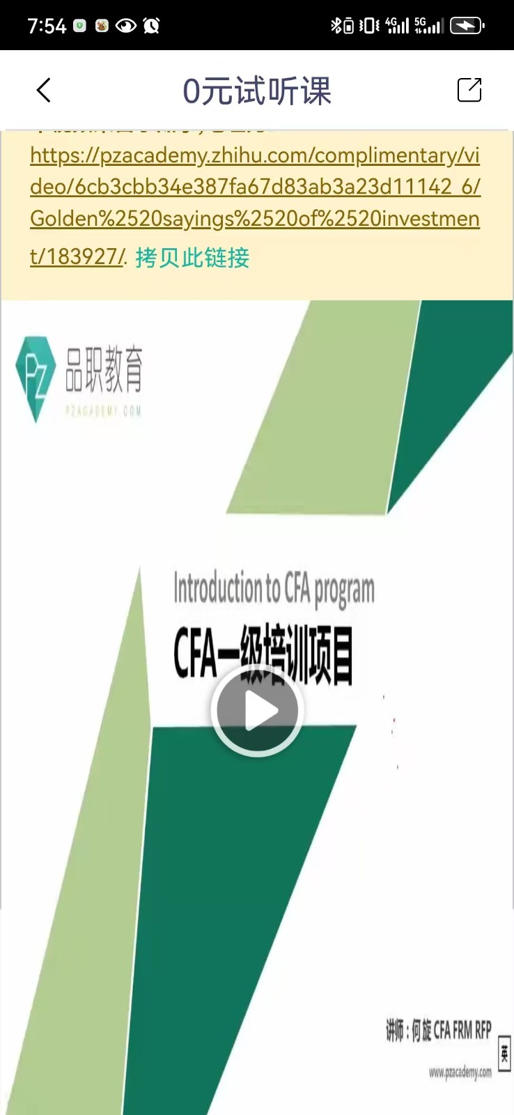 品职教育APP是由CFA/FRM教育专家李斯克与何旋联合创立的移动学习平台,专注金融职业资格认证培训。平台拥有逾百名持证讲师团队,独创"三维教学法"将考点解析、真题演练与实务应用深度融合。除提供完整的CFA/FRM备考体系外,还开发了智能错题本、模考大数据分析等辅助工具,支持视频离线下载与多终端同步学习,真正实现"随时学、随处练"的高效备考模式。