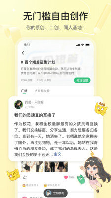 4、互动交流社区:社区采用兴趣小组模式,用户可以加入喜欢的"故事圈"。定期举办线上读书会和作者见面会,促进深度交流。平台还开发了"故事接龙"功能,让用户共同完成一个开放性故事,体验集体创作的乐趣。