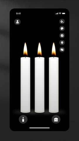【火焰调节】长按屏幕可调整火焰大小,向上滑动增强火势,向下滑动减弱,模拟真实蜡烛的燃烧状态。