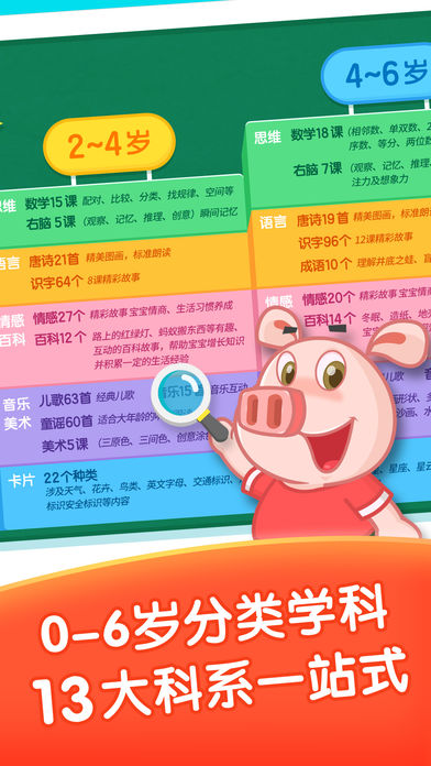 2.12大成长学科600个以上互动课件,寓教于乐。课件形式多样,包含动画、游戏、儿歌等,激发宝宝学习兴趣。