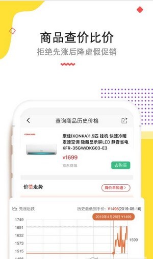 查询比价:独家价格走势图功能,可查看商品180天价格变化,智能预测最佳入手时机!