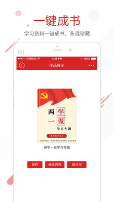 4.一键成书:创新性地将数字内容转化为实体成果,系统支持将各类党建活动记录、学习心得、会议纪要等内容按主题自动排版,生成专业规范的电子书稿。用户可选择在线预览、PDF导出或直接联系合作印刷厂制作成精美纸质书册,让党建成果看得见、摸得着。