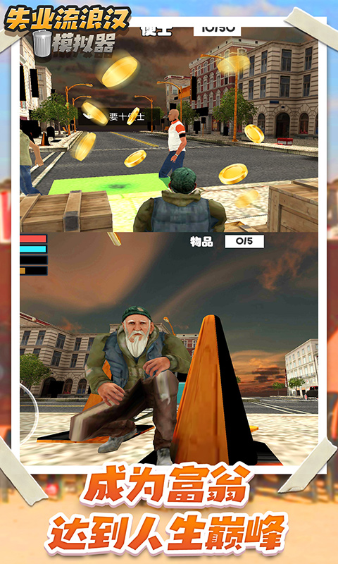 《流浪乞丐模拟器手机版》带你体验一场颠覆人生的生存挑战。在这款高度自由的模拟游戏中,你将扮演一位无家可归的流浪者,从最底层的垃圾桶翻找开始你的逆袭之旅。游戏真实还原了街头生存的残酷与机遇——每天需要精打细算地分配体力,在垃圾堆中寻找可用的衣物和食物,同时还要躲避其他流浪者的争夺。随着游戏进程,你可以通过乞讨、交易甚至投资等方式积累财富,最终实现从乞丐到富豪的华丽转身。细腻的3D建模让城市街景栩栩如生,昼夜交替系统和动态天气变化更增添了生存的真实感。