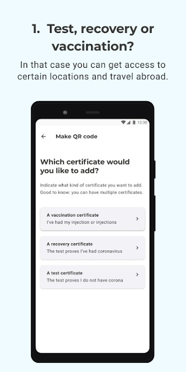 CoronaCheck荷兰健康码最新版是一款专为荷兰疫情防控设计的官方手机应用,由荷兰卫生、福利和体育部开发。该应用通过生成境内和国际两种二维码,高效整合用户的疫苗接种信息、核酸检测结果及出行记录,成为荷兰境内通行和跨国出行的必备工具。用户可随时查询个人健康数据,实时掌握防疫动态,既保障自身安全,也为公共场所的防疫管理提供支持。其权威性、便捷性和安全性使其成为荷兰防疫体系的核心组成部分,助力用户在日常活动和国际旅行中快速验证健康状态。