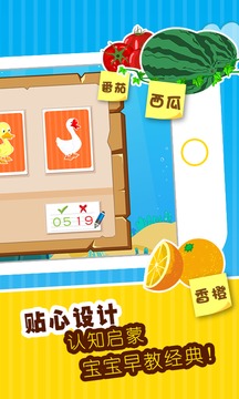 1、精心设计了12套共100多张认知卡片,内容涵盖动物、水果、蔬菜、数字、职业、颜色、声音、国旗、交通工具、身体部位、生活用品、家用电器等12大主题。每张卡片都配有精美的插图和生动的音效,通过图文对应的小游戏帮助孩子建立正确的认知关联,加深记忆。
