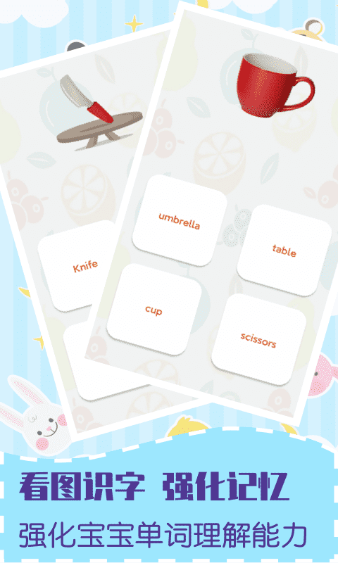 幼儿早教英语是一款专为3-8岁儿童设计的英语启蒙学习软件,通过趣味互动和科学教学方式,帮助孩子在轻松愉快的环境中掌握基础英语知识。软件结合动画、儿歌、游戏等多种形式,激发孩子的学习兴趣,培养听说读写能力。内容涵盖字母、单词、短语和简单对话,适合家庭和幼儿园使用。界面设计简洁友好,操作简单,家长可轻松陪伴孩子学习,是幼儿英语启蒙的理想选择。