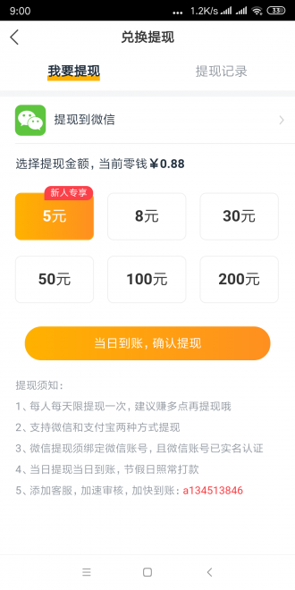 2、海象速赚提现规则灵活:新用户首次满5元即可提现至微信零钱,后续提现门槛仅为10元,平台承诺24小时内完成审核并到账,资金安全有保障