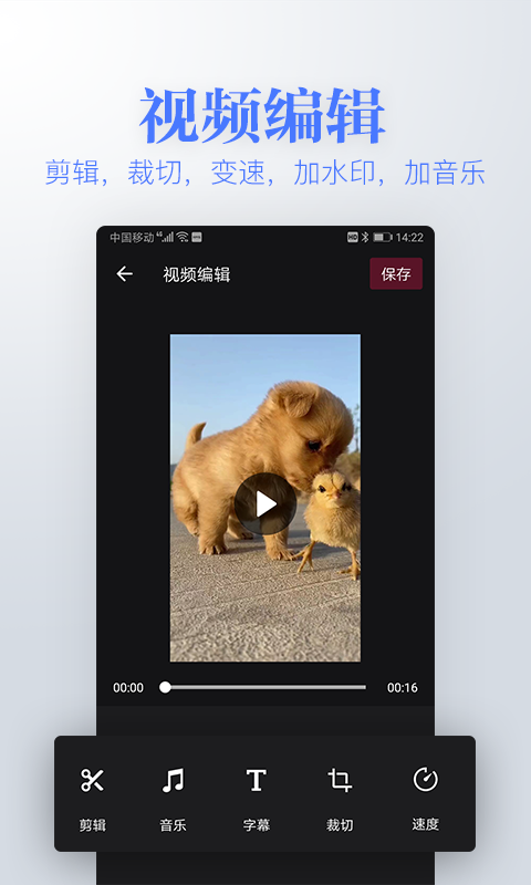 「分割」智能分割算法可自动识别场景切换点,同时支持手动自由分割,剪切过程流畅无卡顿。