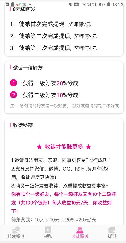 樱花赚是一款真正零投入、高收益的赚钱平台,它不仅提供常规的阅读和转发赚钱功能,更以其创新的收徒分成机制在众多赚钱APP中脱颖而出。这款APP特别适合拥有广泛人脉资源和社交圈子的用户,通过邀请好友加入,您可以获得多层次的收益分成,实现真正的"躺赚"模式。