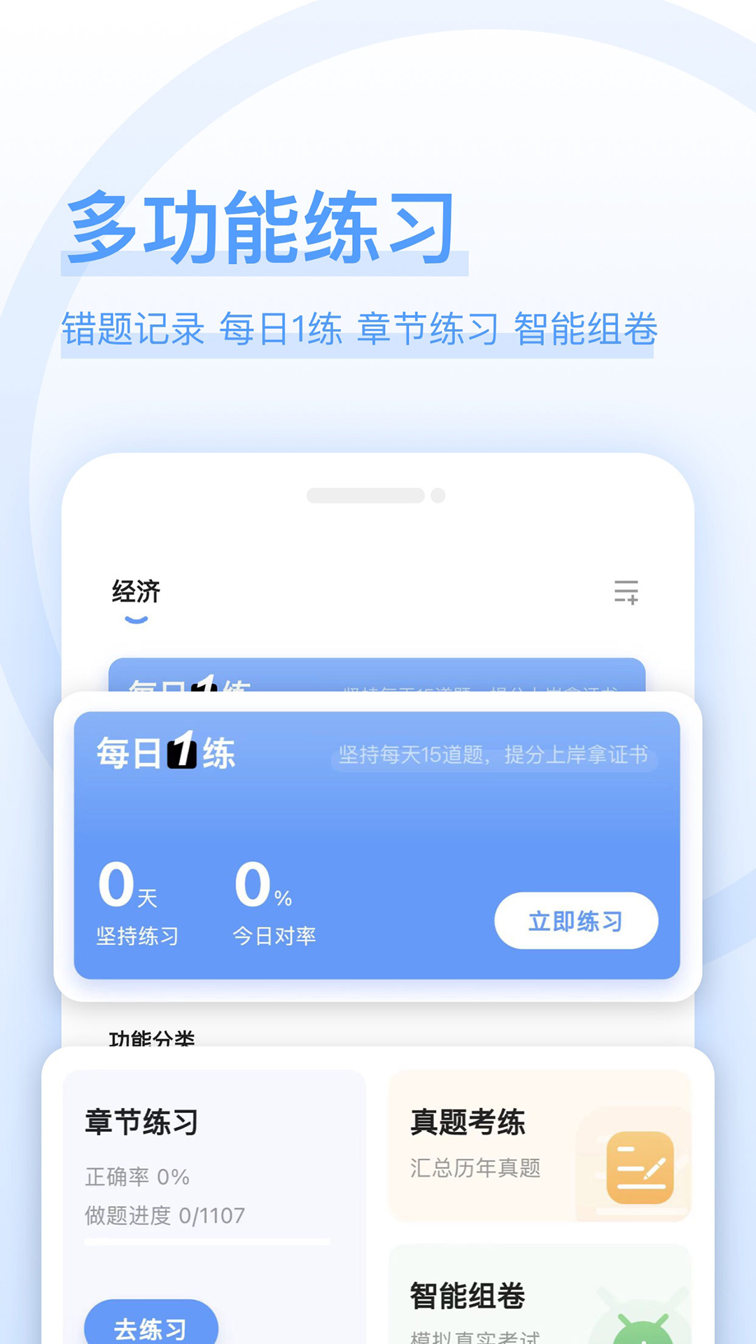 不用担心工作繁忙、学业压力大的问题,用碎片时间就能备考学习。软件支持离线下载功能,用户可将题库下载到本地,在地铁、排队等场景随时学习。每日推送的"15分钟速练"和"考点卡片",让零散时间也能产生高效学习价值。
