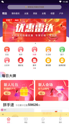 超值优惠福利:平台提供多种形式的优惠活动,包括限时秒购、9.9包邮专区、新人免单福利等。特别是新人专享礼包,让新用户首次购物就能享受超值优惠。