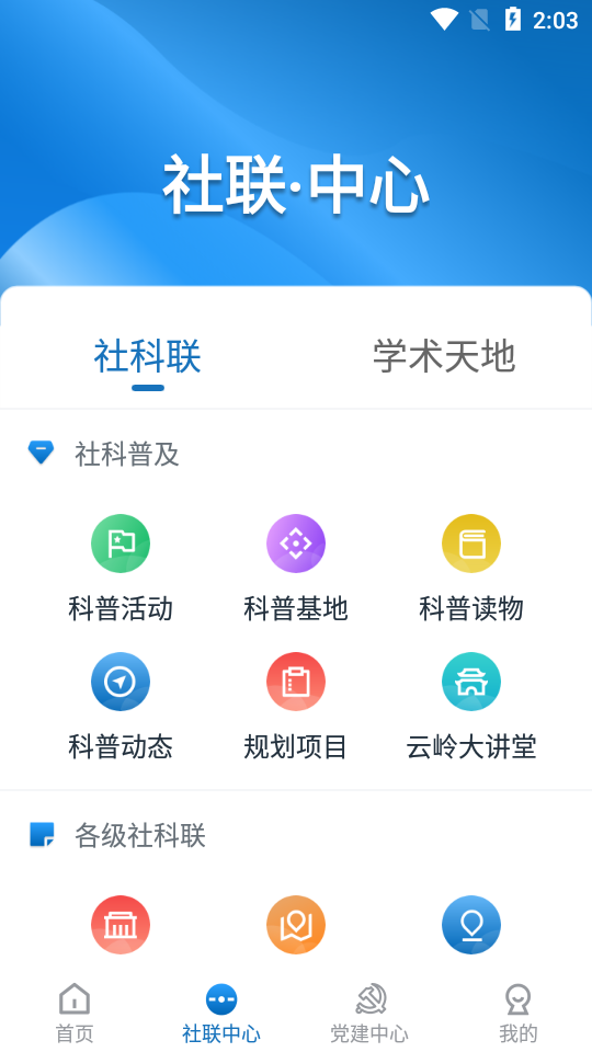 通知公告、工作动态、学术活动、学术文章、科普活动、科普基地、科普读物、科普动态、规划项目、云岭大讲堂等。应用内设有智能推送系统,可根据用户专业领域自动筛选相关内容;学术活动模块支持在线报名、日程提醒和会后资料下载;科普专栏定期更新通俗易懂的社科知识,促进学术成果的社会化传播。特别打造的"云岭大讲堂"板块汇集省内知名专家讲座视频,为用户提供高质量的继续教育机会。