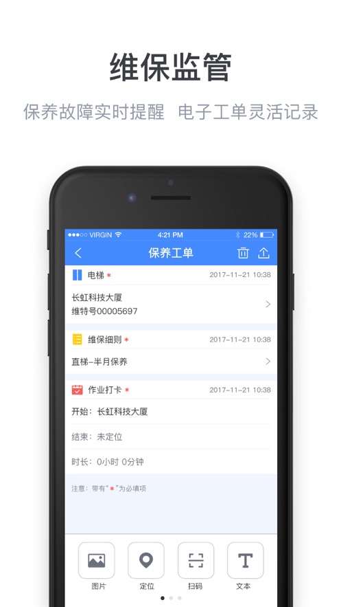 梯视达是一款专为电梯维保行业设计的智能管理APP,通过移动互联网技术重构传统维保业务流程。当前系统采用模块化设计,包含电梯档案管理、工单流转系统、智能控制组件三大核心功能。企业管理者可通过提交营业执照等资质文件完成主体认证,维保人员则需通过实名认证加入所属企业。平台创新性地引入了GPS定位、电子签名、实时拍照上传等监管功能,确保维保作业的真实性和可追溯性。针对行业痛点,系统特别设计了急修响应机制、工时统计、二维码识别等实用功能,通过大数据分析为企业提供决策支持,帮助维保企业实现规范化、标准化运营,提升市场竞争力。