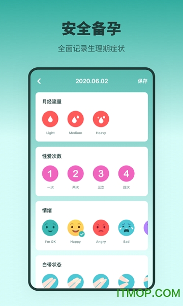 体温统计与分析,帮助您了解自身身体状态,高效备孕。支持蓝牙连接智能体温计,自动记录晨起基础体温。提供专业的数据解读,帮助识别黄体功能不足等问题。