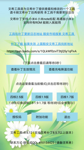 文希工具支持补丁卡刷包功能,能够显著提高手机运行流畅度。目前支持的机型包括高通版小米3、小米4和小米note标配,并且兼容所有ROM版本。补丁内置了定制版SUperSU,这是保证补丁优化代码和功能正常工作的关键组件。如果删除该组件,将导致补丁优化功能失效。需要注意的是,温控拜拜、内核调校以及其他解核方法可能会与补丁产生冲突。如果在刷入补丁过程中遇到问题,可以联系开发者进行排查。